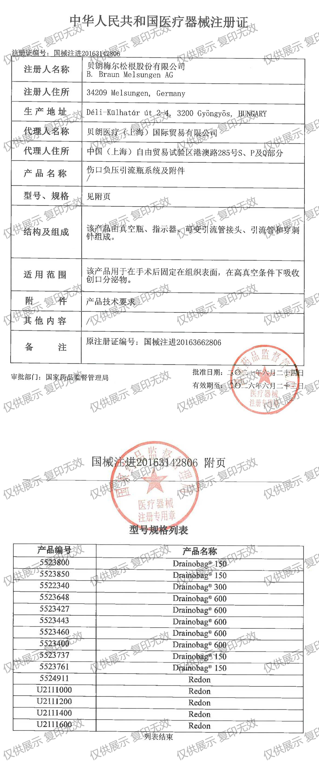 產(chǎn)品名稱:傷口負(fù)壓引流瓶系統(tǒng)及附件