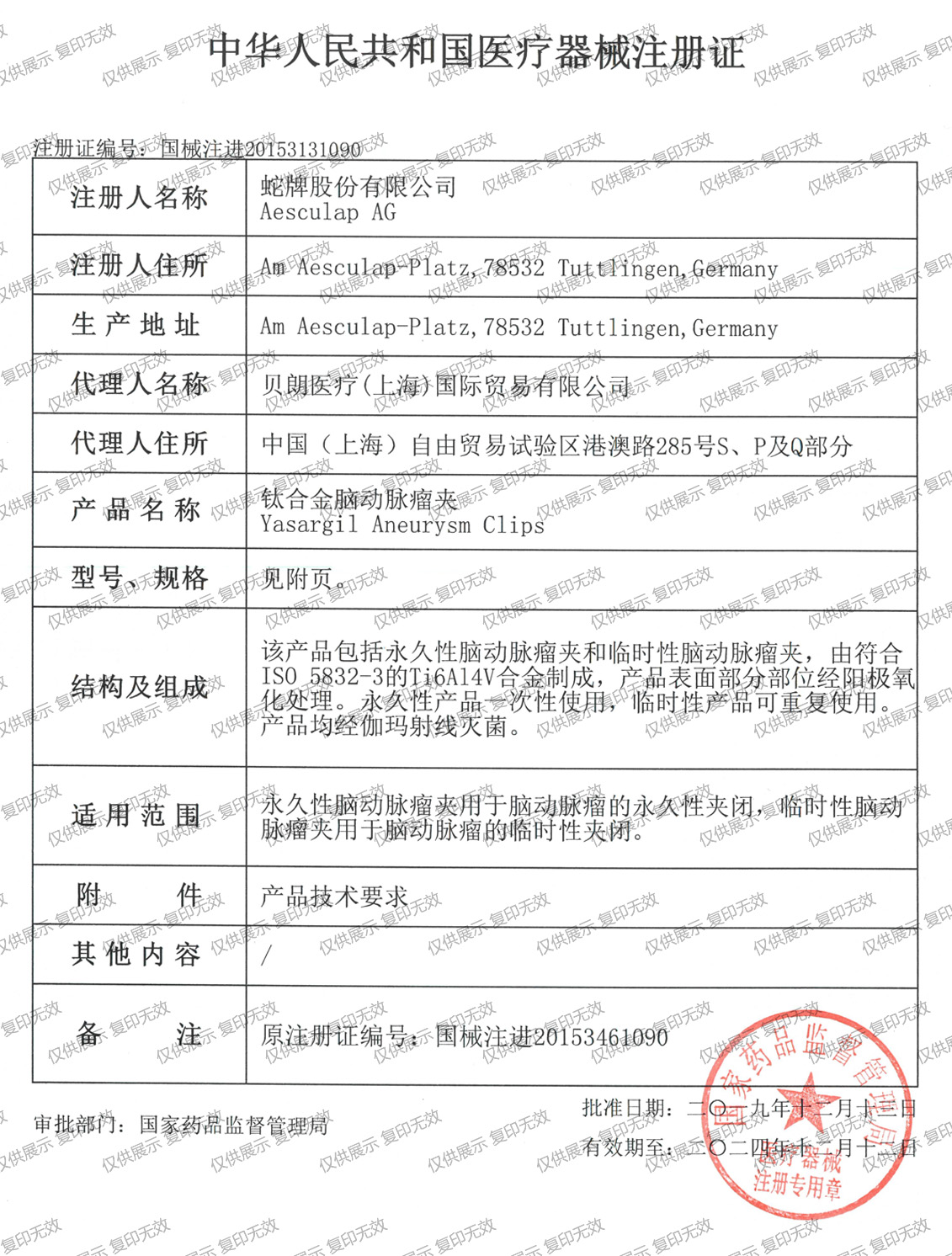 結(jié)構(gòu)及組成:該產(chǎn)品包括永*性腦動(dòng)脈瘤夾和臨時(shí)性腦動(dòng)脈瘤夾,由符合ISO 5832-3的Ti6Al4V合金制成,產(chǎn)品表面部分部位經(jīng)陽(yáng)極氧化處理。永*性產(chǎn)品一次性使用,臨時(shí)性產(chǎn)品可重復(fù)使用。產(chǎn)品均經(jīng)伽瑪射線滅*。