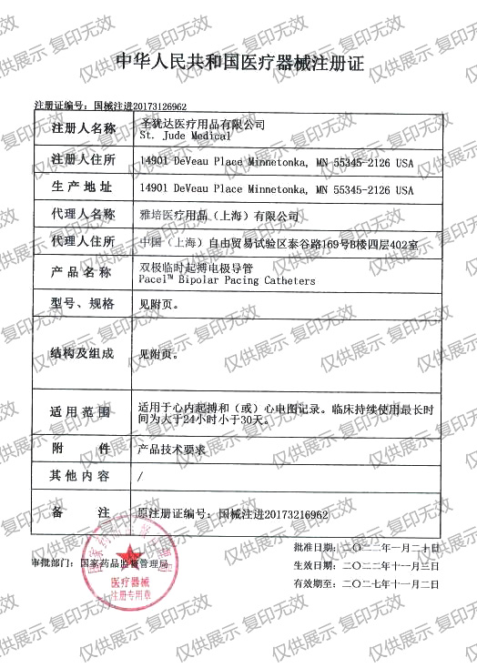 適用范圍:適用于心內(nèi)起搏和(或)心電圖記錄。臨床持續(xù)使用時(shí)間為大于24小時(shí)小于30天。