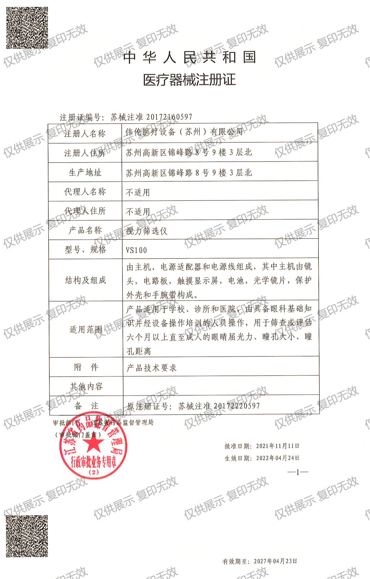 注冊證編號:蘇械注準(zhǔn)20172160597