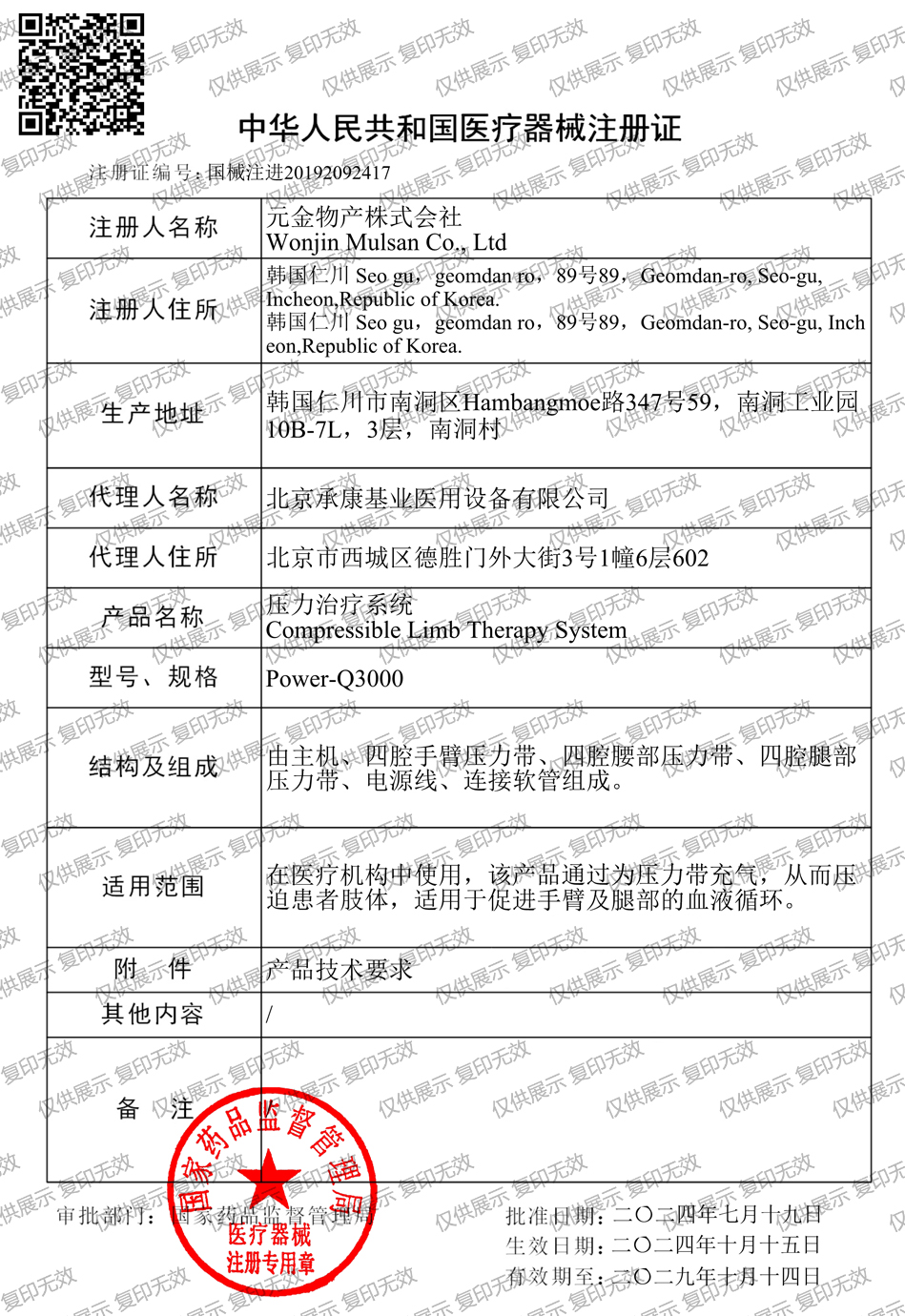注冊(cè)證編號(hào):國(guó)械注進(jìn)20192092417