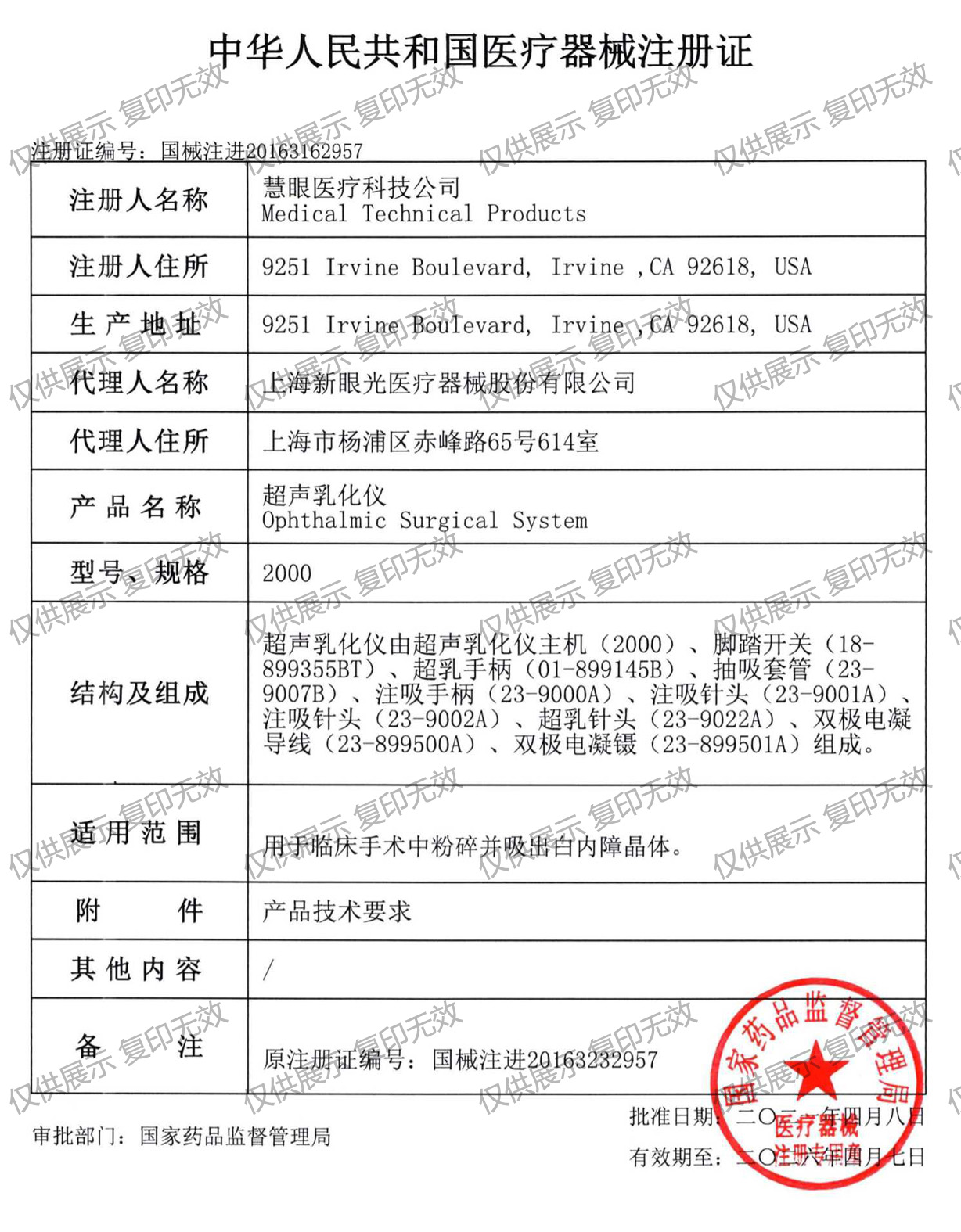 注冊(cè)證編號(hào):國械注進(jìn)20163162957