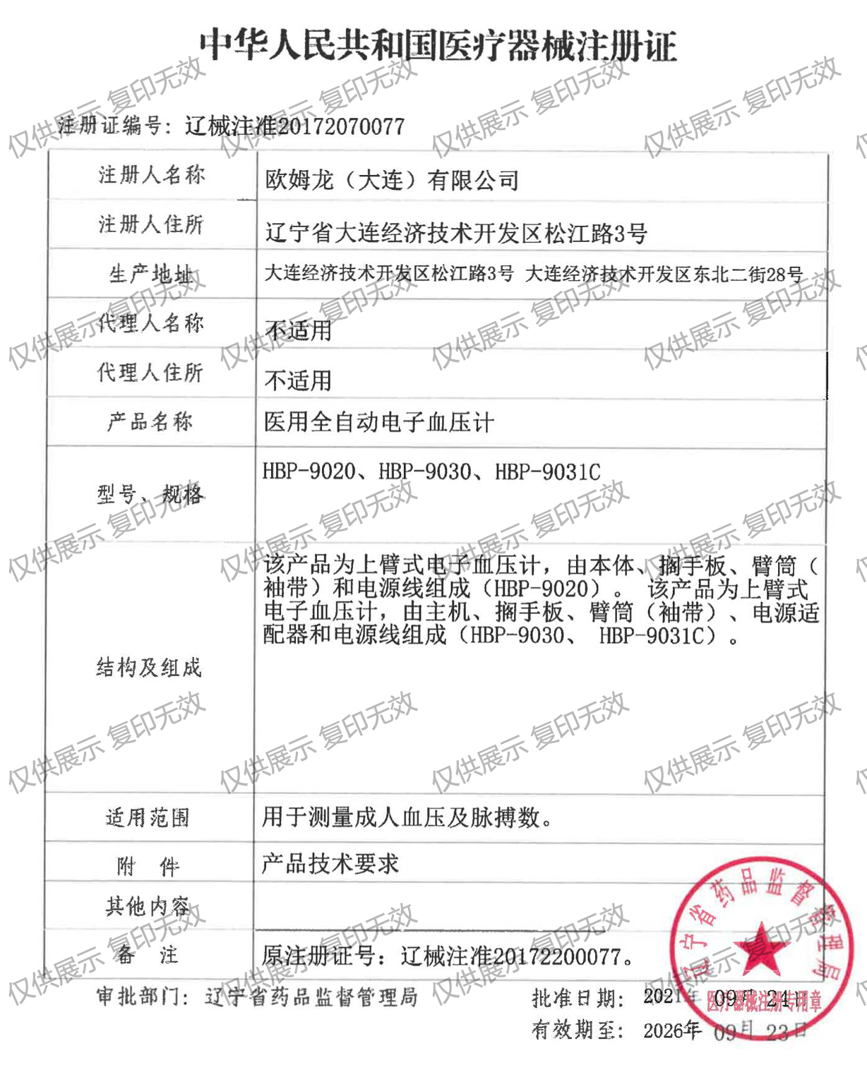 注冊證編號:遼械注準(zhǔn)20172070077