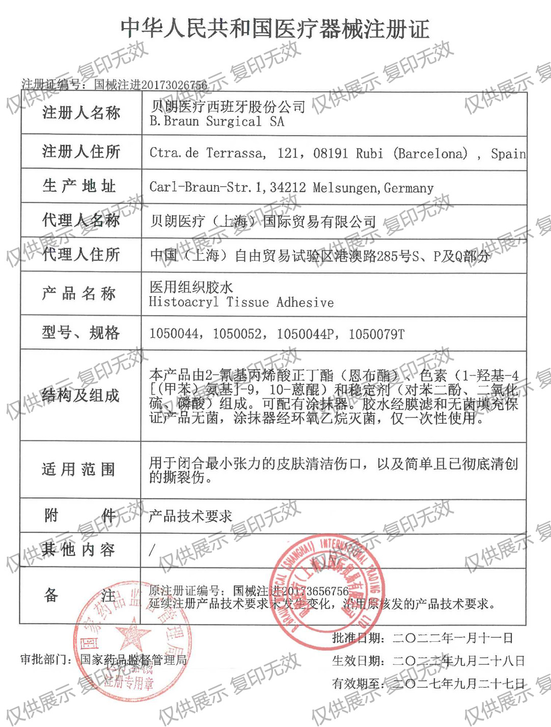 產(chǎn)品名稱:醫(yī)用組織膠水Histoacryl Tissue Adhesive