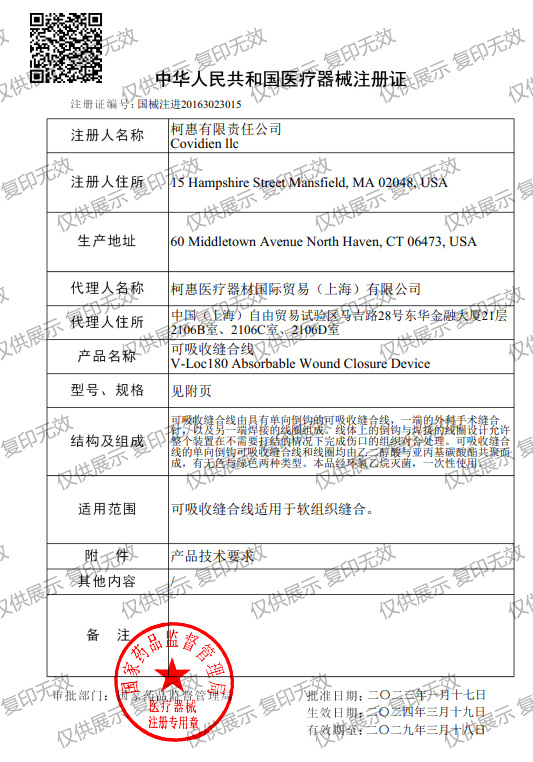 產(chǎn)品名稱:可吸收縫合線V-Loc180 Absorbable Wound Closure Device