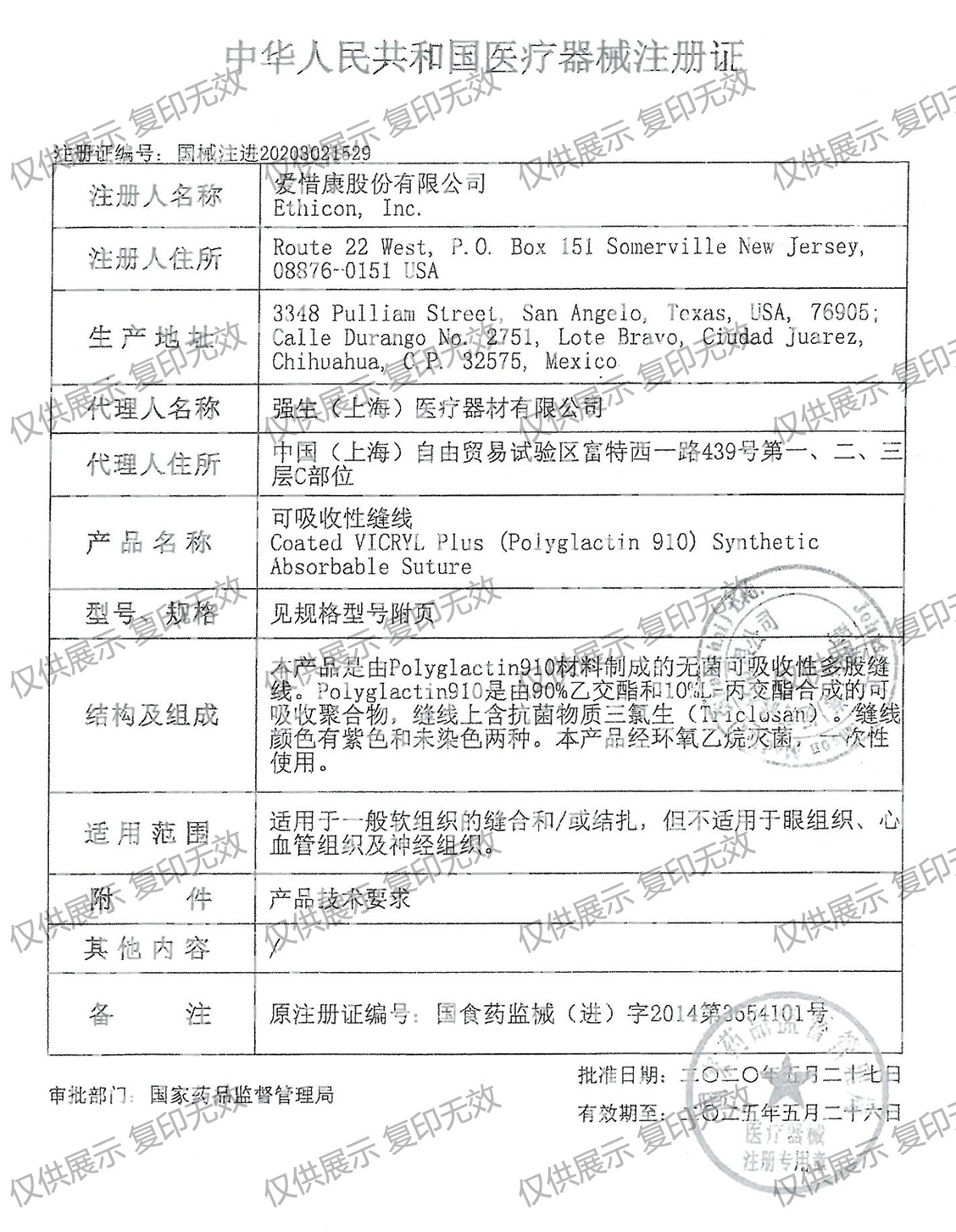 結(jié)構(gòu)及組成:本產(chǎn)品是由Polyglactin910材*制成的無菌可吸收性多股縫線。縫線顏色有紫色和未染色兩種。一次性使用。