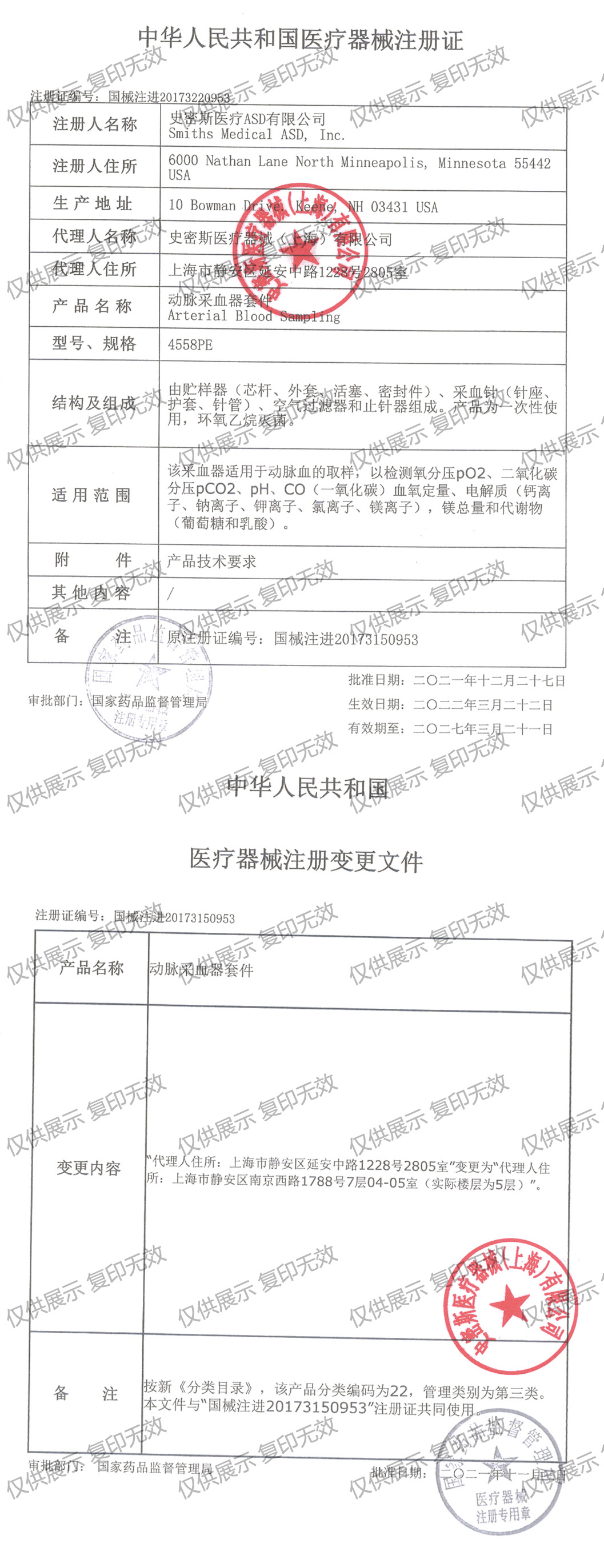 適用范圍:該采血器適用于動(dòng)脈血的取樣,以檢測(cè)氧分壓pO2、二氧化碳分壓pCO2、pH、CO(一氧化碳)血氧定量、電解質(zhì)(鈣離子、鈉離子、鉀離子、氯離子、鎂離子),鎂總量和代謝物(葡萄糖和乳酸)。