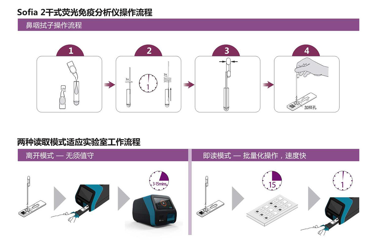適用范圍:該產(chǎn)品采用免疫熒光法,與配套的檢測試劑共同使用,在臨床上用于對來源于人體的鼻咽拭子樣本進(jìn)行病毒抗原檢測。