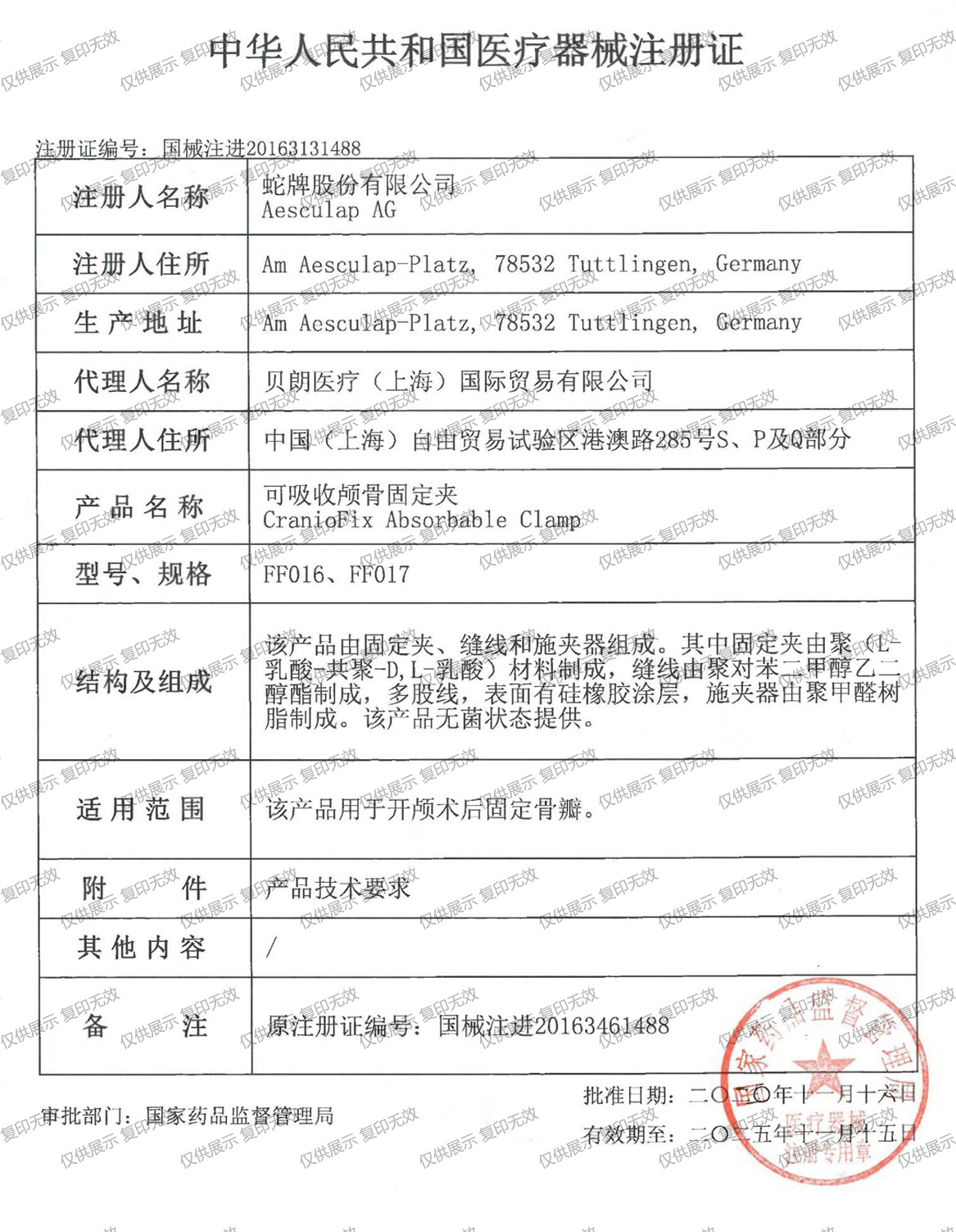 注冊(cè)證編號(hào):國(guó)械注進(jìn)20163131488